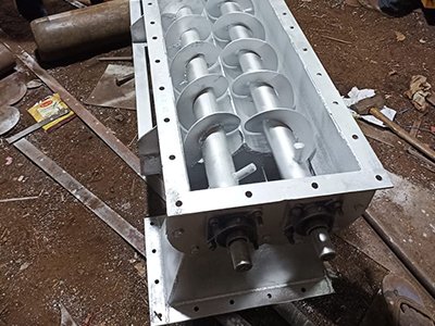 A screw conveyor or auger conveyor is a mechanism that uses a rotating helical screw blade, called a "flighting", usually within a tube, to move liquid or granular materials. They are used in many bulk handling industries. Screw conveyors in modern industry are often used horizontally or at a slight incline as an efficient way to move semi-solid materials, including food waste, wood chips, aggregates, cereal grains, animal feed, boiler ash, meat, bone meal, municipal solid waste, and many others.